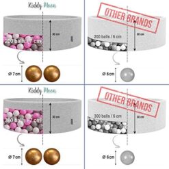 KiddyMoon 90X30cm/300 Balles Piscine À Balles ∅ 7Cm pour Bébé Quart Angulaire Fabriqué en UE, Gris Clair: Blanc/Gris/Rose Poudré