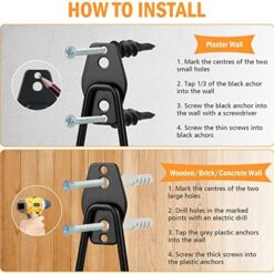 Kitmiido Organisez Votre Garage Avec Notre Lot de 12 Crochets en Acier Robustes – Support Mural et Organisateur D’outils Pour Pelles, Vélos, Outils, Cordes, Tondeuses à Gazon et Plus Encore