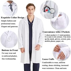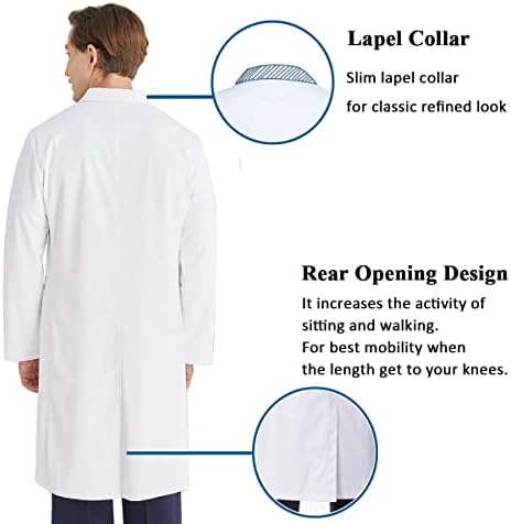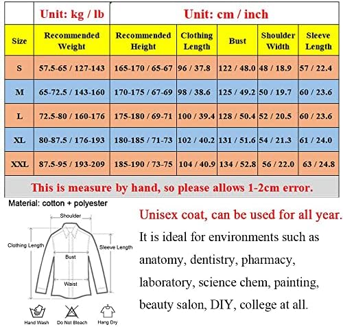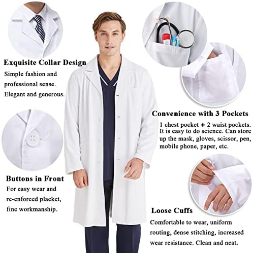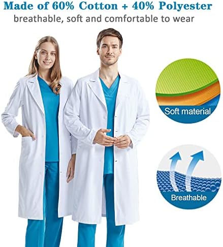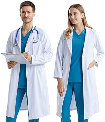 KUMARS Blouse Laboratoire, Blouse Blanche Lycée Coton, Blouse de Médecin pour Homme Femme, Blouse Manches Longues Blouse Blanche Chimie pour étudiants Laboratoire Scientifique Infirmière Cosplay,XL