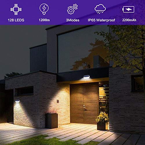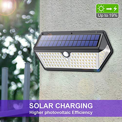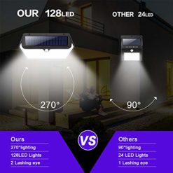 - ☀【Lampe solaire avec étanchéité durable】 Lampe LED 128 LED avec nouvelle version Éclairage grand angle à 270 °, Le capteur de mouvement PIR mis à jour détecte les personnes à une distance de 10 à 16 pieds, couvrant ainsi davantage de mouvements de zone d’éclairage. 1200 lumens de lampes solaires pour illuminer votre jardin. ❤36 mois de garantie❤
