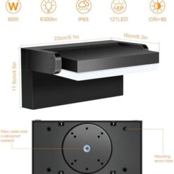 LEDMO 60W Applique Murale Exterieur, 6000Lm éclairage Mural d’extérieur étanche IP65, Lampe Projecteur Exterieur Led Réglable pour Terrasse Entrée Jardin, Noire 3000K.