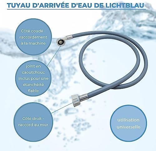 Lichtblau Tuyau d’arrivée d’eau Lave-linge Lave-vaisselle 2964 Raccordement longueur 1,5m I 3/4″ coudé/droit avec joint I Tuyau d’arrivée d’eau usage universel Indépendant du fabricant