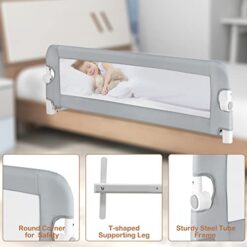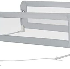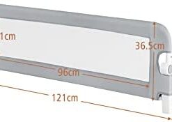 LIFEZEAL Barrière de Lit Pliable, Barriere de Securite Enfant Lit en Tissu Oxford et en PP, Barriere de Lit Enfant 121×42 CM, Protection Chute Enfant (Gris)