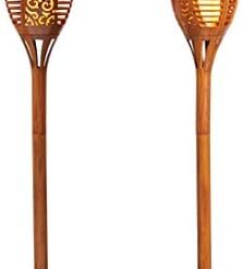 Lights4fun Lot de 2 Torches Solaires LED Blanc Chaud Flamme Vacillante pour Extérieur