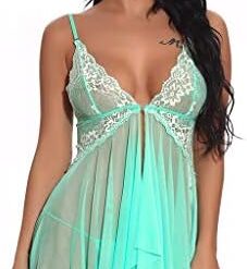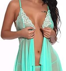 Lingerie Femme Nuisette Dentelle Lace Pyjama Ensemble Tenue Fonds de Robe Chambre Fermeture Avant Babydoll Dentelle Col V Maille Pyjama Sous-VêTements Chemise de Nuit Babydoll Coquine Lingerie