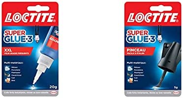 Loctite Super Glue-3 XXL, colle forte grand format pour usages fréquents & Super Glue-3 Pinceau, colle forte facile à utiliser avec son pinceau applicateur, colle liquide à séchage instantané
