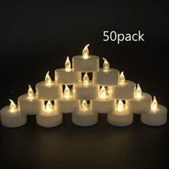 Lot de 50 bougies LED CR2032 piles Unscented chauffe-plat sans flamme claire vacillante gefälschte Bougie pour la maison décorations de Noël Mariage(Lumière blanche chaude)