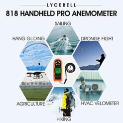 LYCEBELL Anémomètre Numérique, LC-818 Anémomètre Portatif pour Mesurer la Vitesse du Vent, la Température, Airflow Anémomètre avec Refroidissement éolien, pour Drone, Voile, Pêche, Météorologie