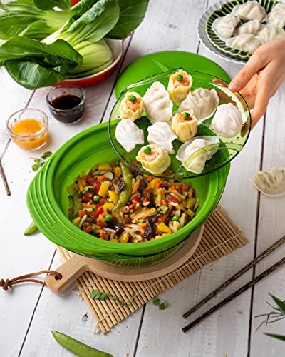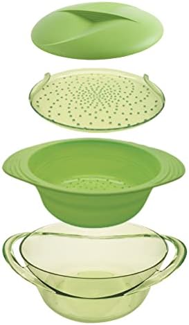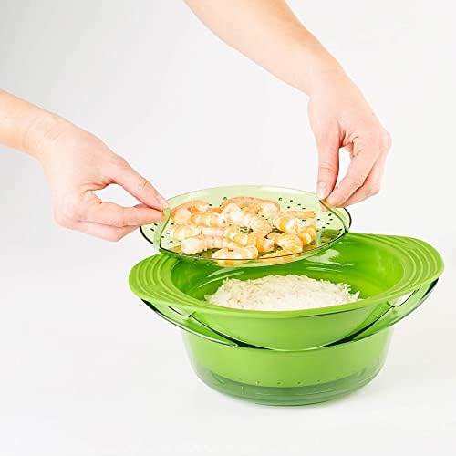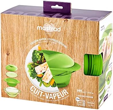 MASTRAD – Cuit Vapeur – Cuisson Micro-Onde – Conservation – Cuisson Saine & Rapide d’un Repas Complet – Préserve le Goût et les Nutriments – 3,2L – Vert
