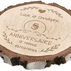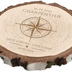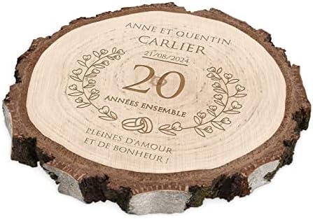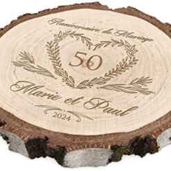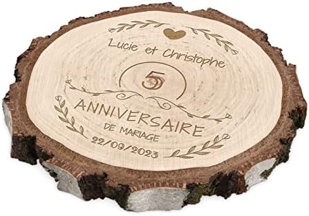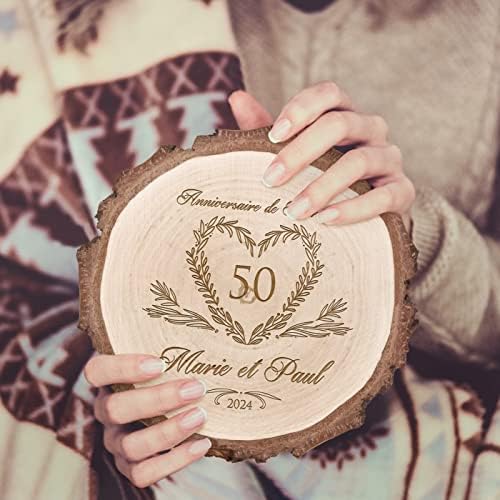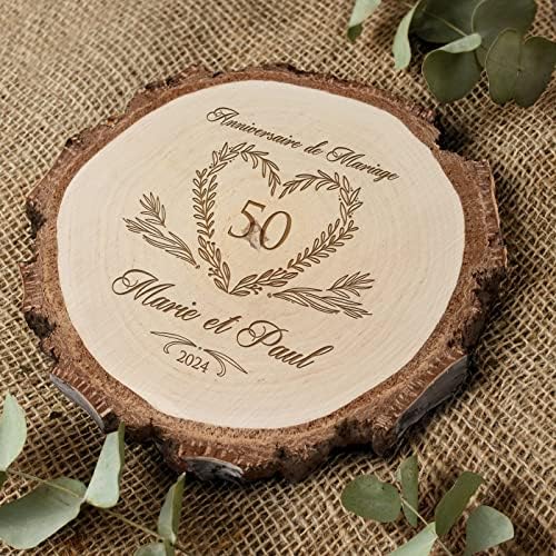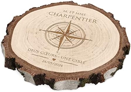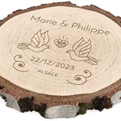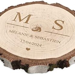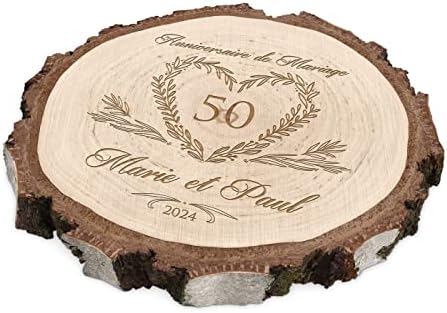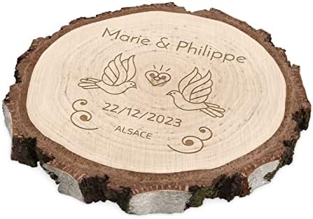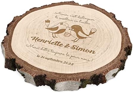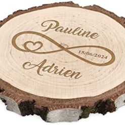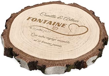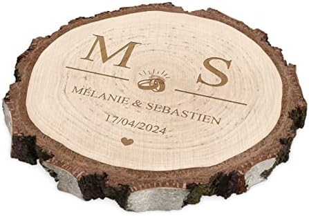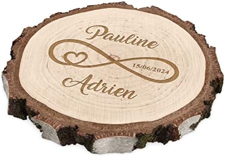Maverton Rondin de Bois Personnalisable – Tranche de Bois Naturel avec Gravure pour Couple – Cadeau Couple – anniversaire de mariage – Noce de Bois – Cadeau Noel – decoration en bois – Cœur