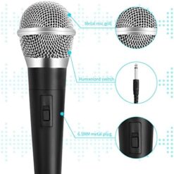 Microphone Dynamique avec Fil, Micro Chant Cardioïde, Micro de Karaoké Filaire, Portable Micro Voix Claire pour Chant Live Conférence Mariage, avec 3 M XLR à 6,5 mm Câble et Bouton on/Off (A)