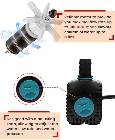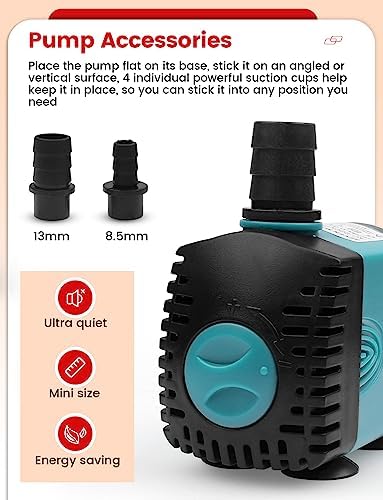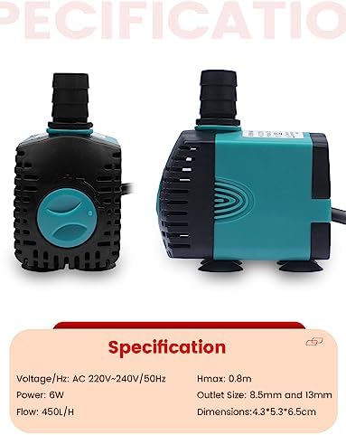 Mini Pompe d’aquarium (450L/H, 6W) pompe à eau, pompe de bassin Pompe submersible Pompe à eau Pompe fontaine HMAX 0,8 m, EB302