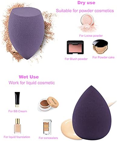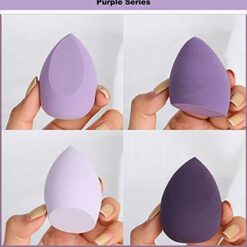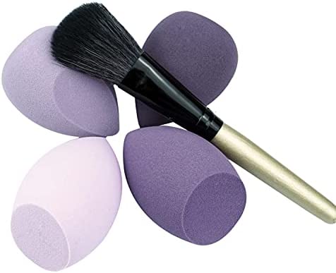 Mocarheri 4 pièces Maquillage Éponge & 1 PCS Brosses de fond de teint, Mélangeur de Beauté Éponges de Fondation pour Liquides, crèmes et poudres, Éponge de maquillage (Série violette)