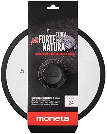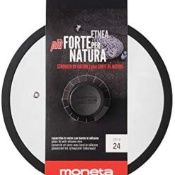 Moneta Etnea Couvercle en Verre Trempé avec Rebord en Silicone, Résistant aux Hautes Températures, Revêtement Effet Pierre, Compatible Lave-Vaisselle, 24 cm