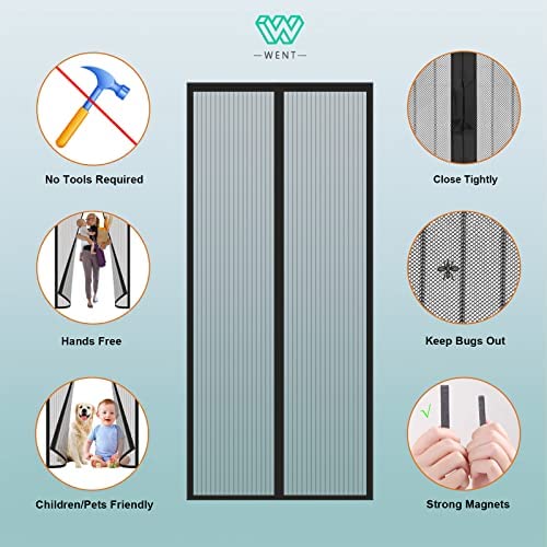 Moustiquaire Porte Fenetre Magnétique 180×220 cm, Rideau Anti Moustique Convient à Toutes les Tailles de Portes de Balcon, de Portes de Salon, de Portes Extérieures, de Portes Coulissantes, etc. Noir