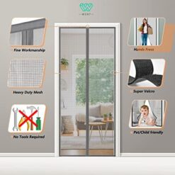 Moustiquaire Porte Fenetre Magnétique 90×215 cm, Rideau Anti Moustique Convient à Toutes les Tailles de Portes de Balcon, de Portes de Salon, de Portes Extérieures, de Portes Coulissantes, etc. Gris