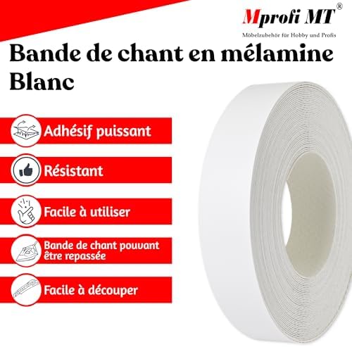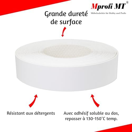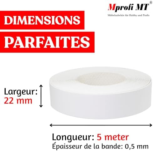Mprofi MT® – Chant Melamine | 22mm X 5m | Bande de Chant Blanc | Epaisseur 0,50mm | Facile à Appliquer | Pour Étagères, Meubles & Panneaux | Chant Thermocollant Durable