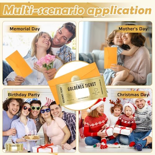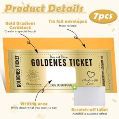 Mumjooyi Carte à gratter Ticket d’or Ticket d’or Carte Cadeau Autocollant à Gratter Golden Ticket à Gratter Cartes Cadeaux et Billets à Faire Soi Même Idéal Anniversaire Cadeau Couple