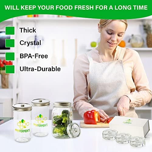 myFERMENTS Poids de Fermentation en Verre – Fermentation, Conserve, Saumure & Marinade des Légumes – Large Diamètre pour Grands Mason Jars – Poignée avec Grip – Boîte Magnétique (4 Pack)