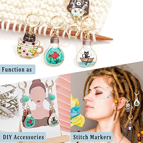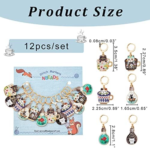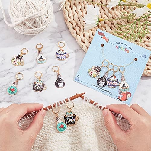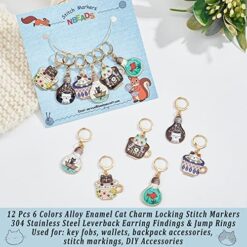 NBEADS 12 Pcs Chat Marqueurs Point Crochet, 6 Couleurs Alliage Émail Chat Crochet Point Marqueur Charmes Amovible Verrouillage Point Marqueur pour Tricot Tissage Couture Quilting Bijoux Faits à Main