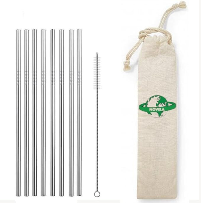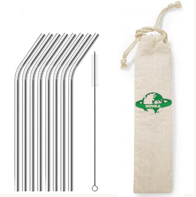 Novela Global – Pailles en inox courbées lot de 8 avec pochon et goupillon