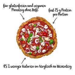 - RICHE EN PROTEINES ET EN FIBRES : pâte à pizza protéinée – sans levure et sans gluten – qui fournit autant de protéines et de fibres avec une faible teneur en glucides. Idéal pour une alimentation équilibrée et consciente.