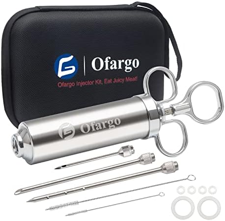 Ofargo Seringue alimentaire, Seringue viande avec 3 Aiguilles, injecteur de marinade pour Boeuf, Poulet, BBQ; seringue à marinade capacité de 60 ml/2 oz; emballage EVA pour un stockage facile