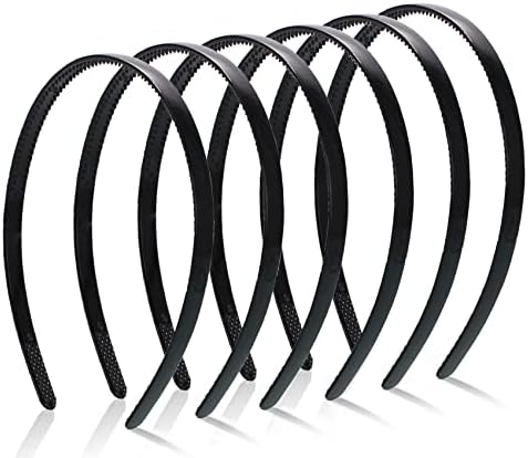 Olakin Bandeau Peigne De Dents [6 Pièces], Bandeaux Unis En Plastique, pour Fille Femmes, Le Maquillage, Lavage Du Visage (8MM, Le Noir)