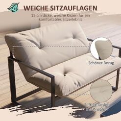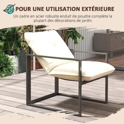 Outsunny Salon de Jardin 4 pièces 4 Personnes avec canapé 2 Places, 2 fauteuils et 1 Table Basse 3 Coussins pour terrasse Jardin – Acier Noir Polyester Beige
