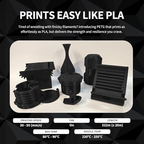 OVERTURE PETG Filament 1.75mm, Bobine de 1kg(2,2lbs), Précision dimensionnelle +/- 0,02 mm (Noir)