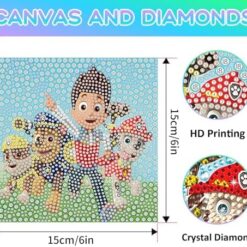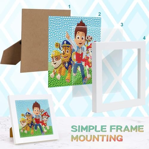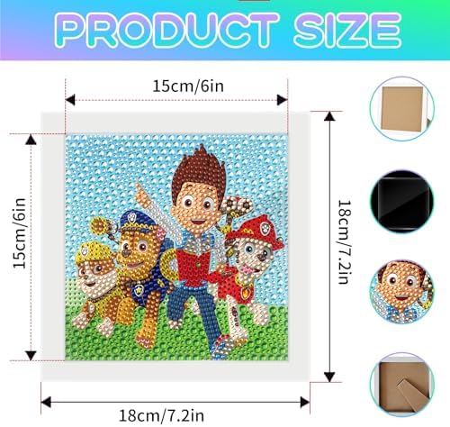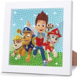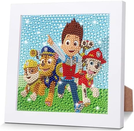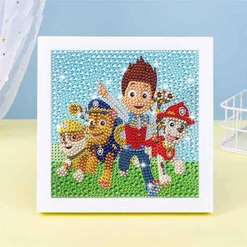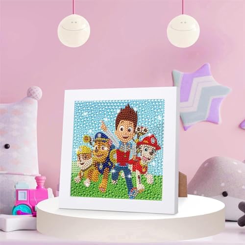 Paaw Dog Paatrol DIY Diamond Painting Enfant,5D Broderie Diamant Kit Complet Avec Cadre en Bois, Peinture Diamant pour Adultes Enfants Garçon Filles,Diamant Painting pour Maison Salon 18 x 18 Cm