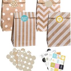 PAKNOR® Set de 40 sacs cadeaux en papier coloré avec 96 autocollants pour emballer des cadeaux d’anniversaire d’enfant, de mariage, de fête