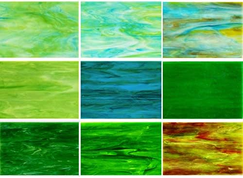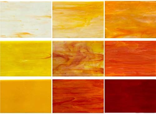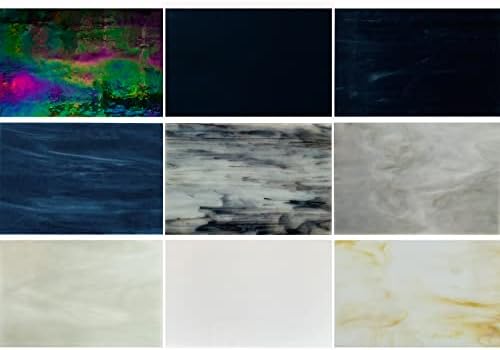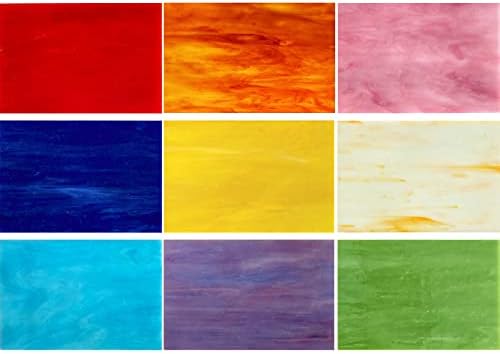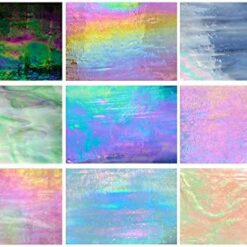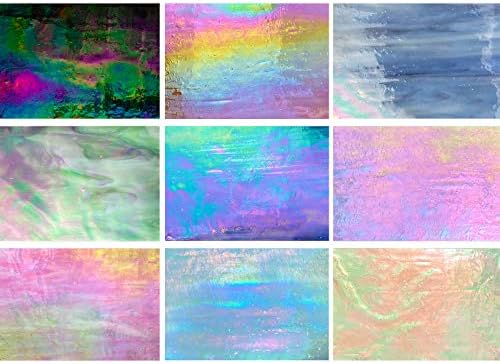 Paljolly Lot de 9 feuilles de verre vitrail 10,2 x 15,2 cm Couleurs arc-en-ciel irisées pour projets de vitrail et mosaïques
