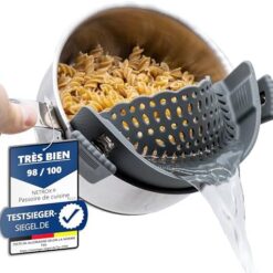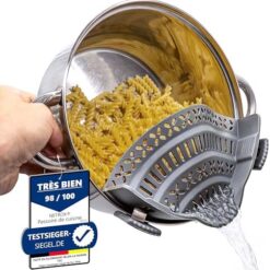Passoire Clipsable Universelle en Silicone – Demi Passoire avec Bec Verseur pour Casseroles – Gadget Cuisine Pratique pour Égoutter Pâtes et Aliments – Passoire Pliable, Compacte, Adaptable et Durable