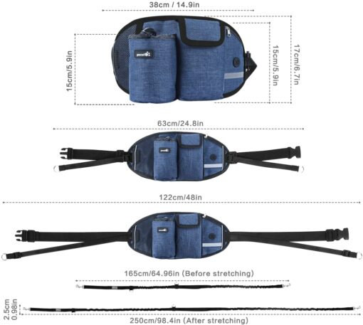 - Laisse: largeur: 2,5 cm. Longueur: 165cm / 64,96 pouces, après l’extension: 250cm / 98,4 pouces