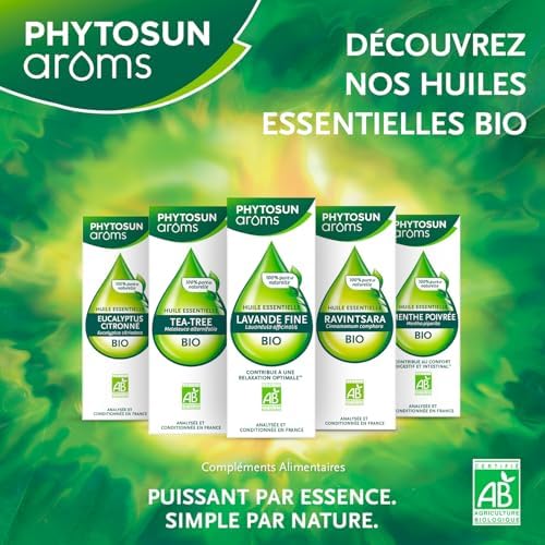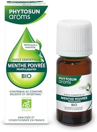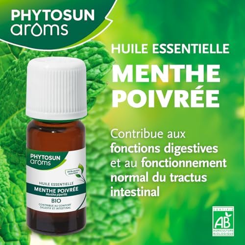 PHYTOSUN AROMS – Huile Essentielle Menthe Poivrée Bio – HEBBD – 100 % Pure & Naturelle – 100% Bio – Contribue au Confort Digestif et Intestinal – Analysée & Conditionnée en France – 10 ml