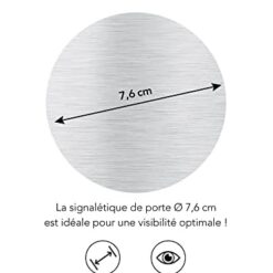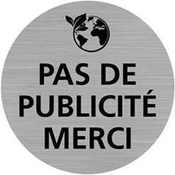 Pictogramme Pas de publicité Merci (Q0455). Autocollant souple effet alu brossé ou plaque de porte alu brossé ep 2mm au choix – Diamètre 76 mm – Adhésif aspect aluminium brossé – Adhésif aspect alumin