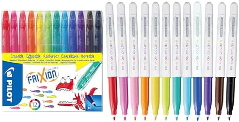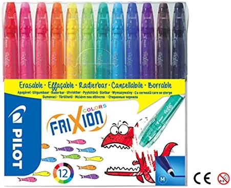 Pilot – 12 FriXion Colors – Feutres de Dessin et de Coloriage à Encre Thermosensible Effaçable – Ultra lavable – Couleurs assorties – Pointe Moyenne Conique