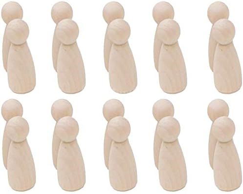 POFET 20 pcs Naturel Non Peint Femelle Mâle Petit en Bois Peg Poupée Corps pour DIY Arts Artisanat Peinture Sculpté – Fille 43mm