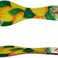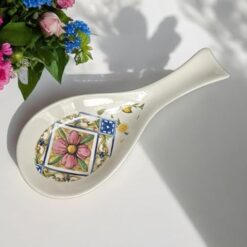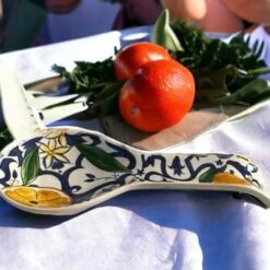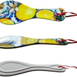 POGE MESTOLO EN CÉRAMIQUE, PORTE CUILLIER, ACCESSOIRE DE CUISINE, OUTIL DE CUISINE MULTIUSAGE, IMPRIMÉ MAIOLIQUE CM 30 (Blanc/Citron Sicile)