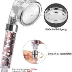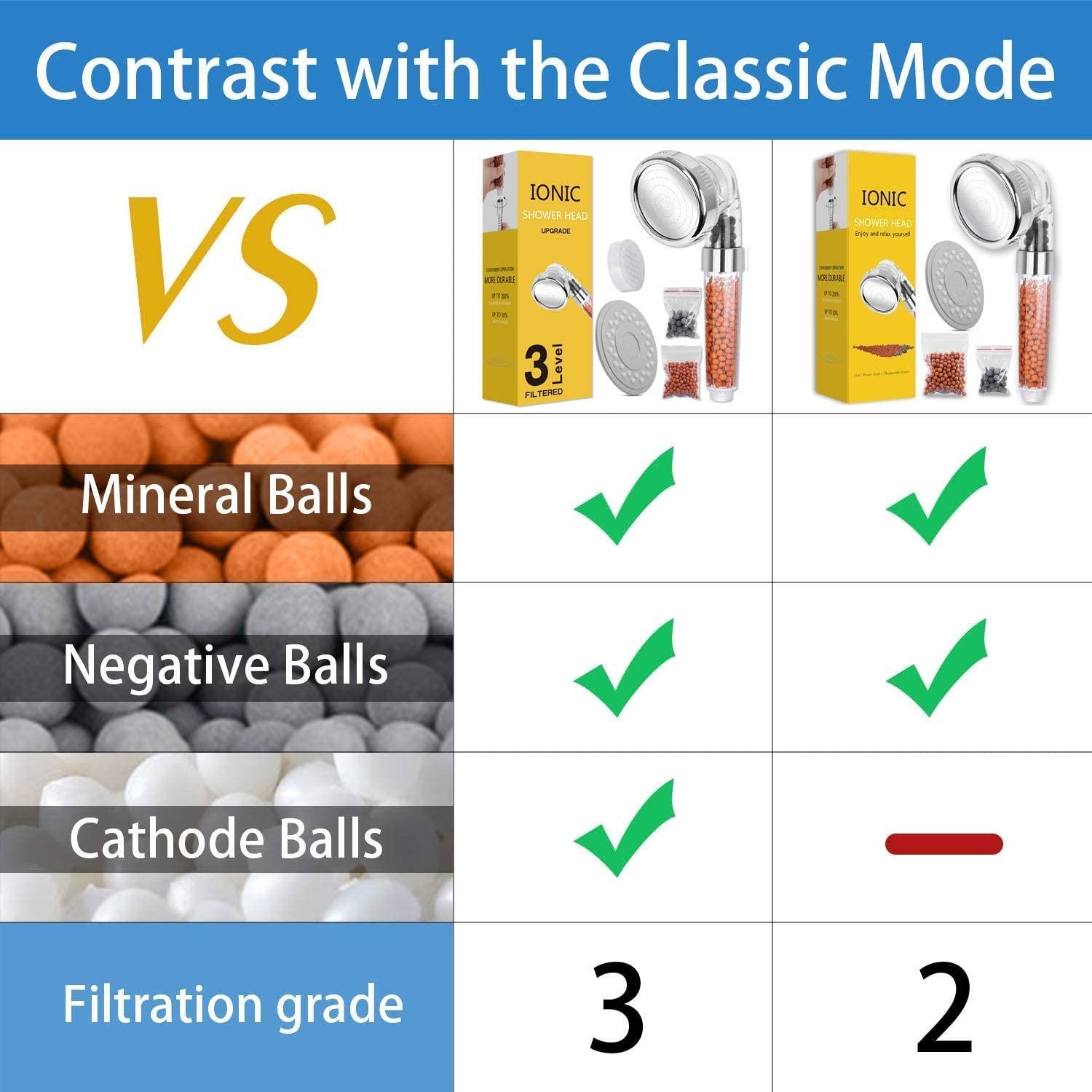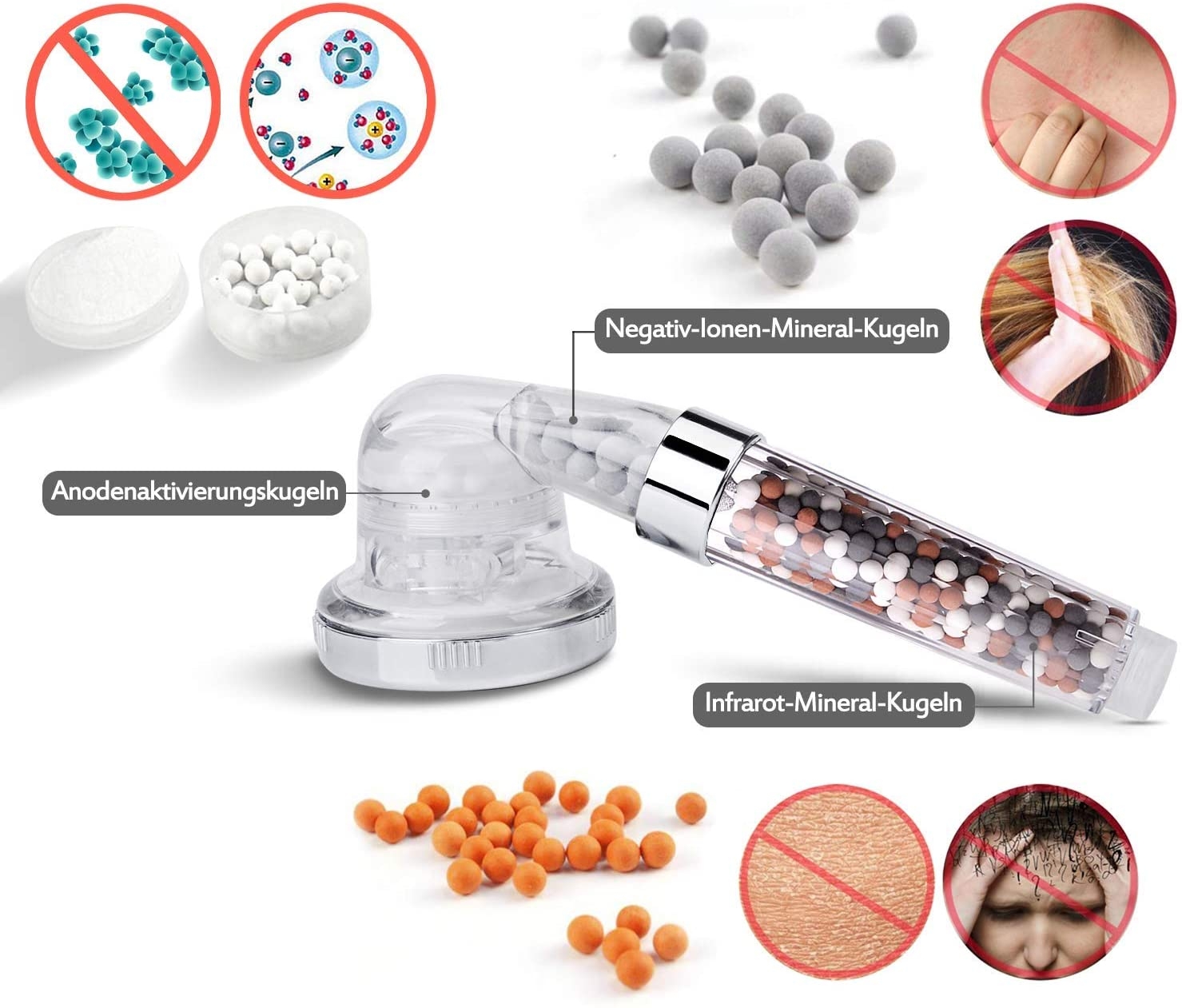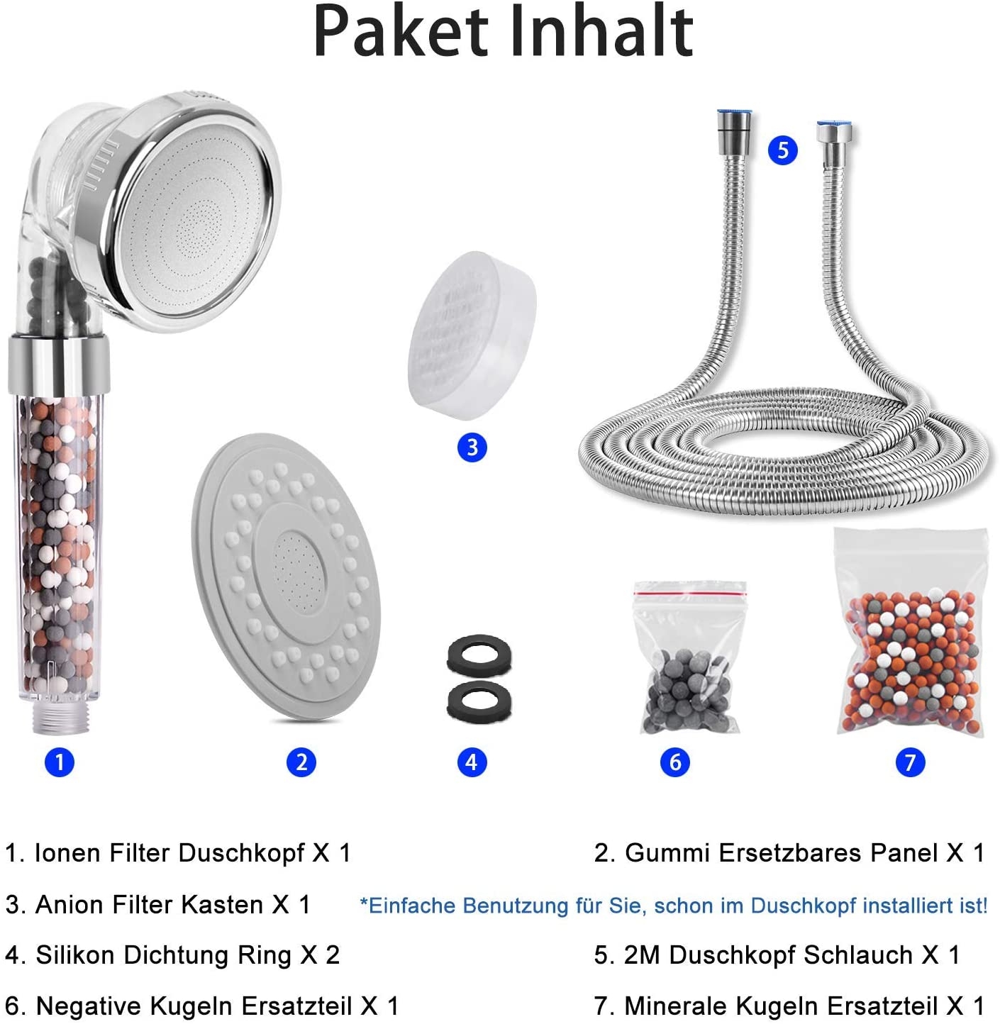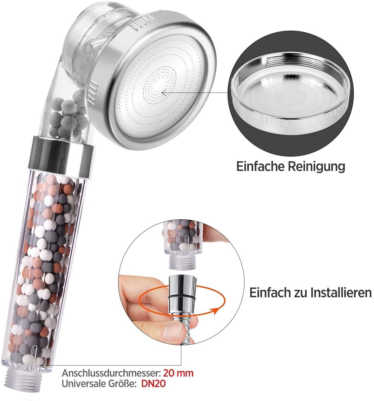 - 🚿【Filtration à 3 niveaux mise à jour】Notre pommeau de douche inclut une couche de filtration de plus que tous les autres produits en vente actuellement ; ainsi, il adoucit l’eau dure (haute concentration d’ions calcium et magnésium), et participe à éliminer chlore et fluorure, métaux lourds, toxines, bactéries, ainsi que la rouille et les mauvaises odeurs dues aux dépôts de matériaux dans l’arrivée d’eau. Notre but est de vous offrir une douche des plus pures et saines à la maison.