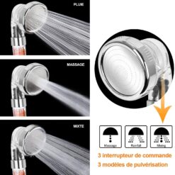 - 🚿【Pommeau 3 Modes】Notre Pommeau de Douche Magichome contient également trois modes de pulvérisation de l’eau : Pluie, Jet et Massage. Utilisez le commutateur sur le pommeau pour changer instantanément. Chaque mode de pulvérisation est conçu pour fournir une variété d’expériences comparables à un spa dans votre salle de bains !
