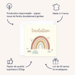 Soyez le premier à laisser votre avis sur “popcarte Invitation Anniversaire Fille • Lot de 16 Cartes & 16 Enveloppes Blanches Incluses • Thème Arc-en-ciel • Carte Made in France 14x14cm • Idéal pour l’Anniversaire de votre fille”
