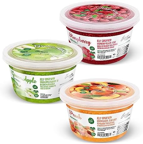 Soyez le premier à laisser votre avis sur “POPPING BOBA ORIGINAL MIX pour Bubble tea – Pêche, Pomme Verte & Framboise (3x 450 g) – sans colorants artificiels, de vrais jus de fruits, moins de sucre, 100% VÉGÉTALIEN et SANS GLUTEN”