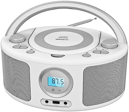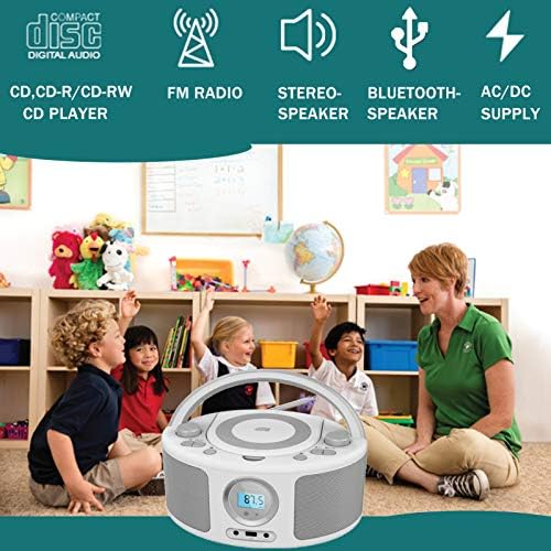 Poste CD Enfant,Radio FM Lecteur CD Portable Boombox,Lecteur Radio CD avec Bluetooth | Radio FM | USB | Lecteur MP3 | Compatible CD-R/CD-RW,Entrée USB | AUX, Lecteur CD Enfant (Gray Radio)