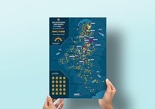 Poster à gratter des stations de ski. Carte à gratter des stations des Alpes.