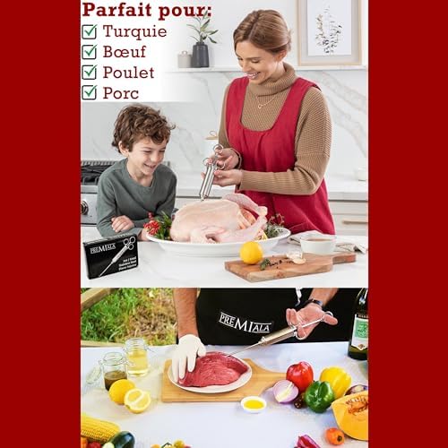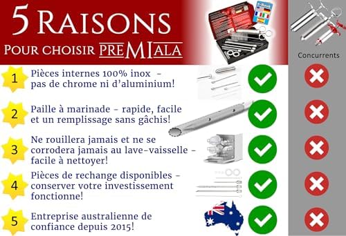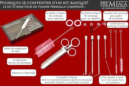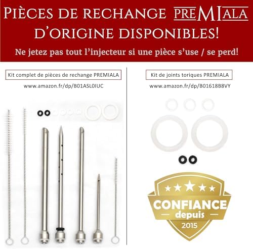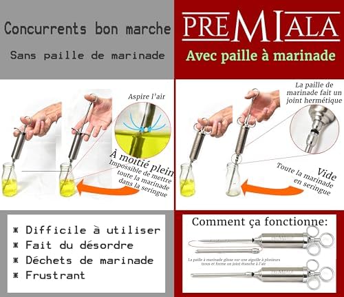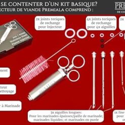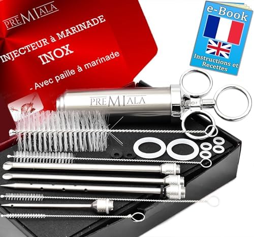 Soyez le premier à laisser votre avis sur “Premiala Injecteur à Marinade en inox 304 – Avec paille à marinade! 4 aiguilles, joints toriques de rechange, e-book en Français, pièces détachées disponibles – L’injecteur pour viande original 60ml!”