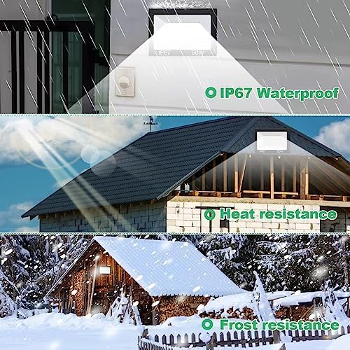 Projecteur Spot LED Exterieur 50W, 72 Puces, 5000LM 7000K Blanc Froid Eclairage de Sécurité , IP67 Imperméable Luminaire Pour Patio, Garage, Jardin, Terrasse,Usine