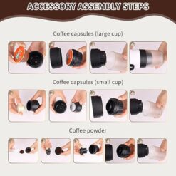 PZCC Machine à Café Portable de Voyage,Expresso Cafetière Rechargeable 12V et sa pochette Pour Camping et Voiture,Chauffage Rapide,compatible avec Capsules K-Cup et café moulu,Pour voyage (Noir)