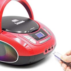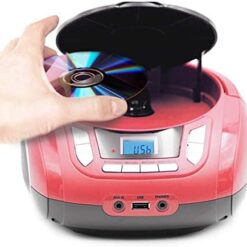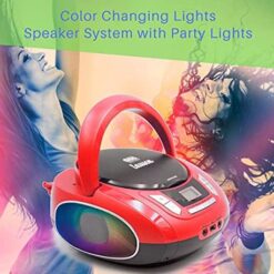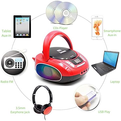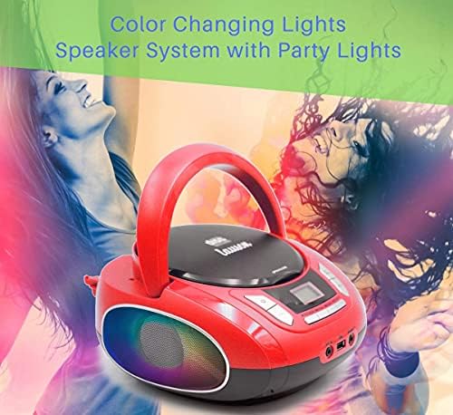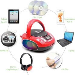 Radio Lecteur CD pour Enfant avec Port USB | Lumières LED Multicolores | Radio FM écran LCD | Lecteur USB pour Lire Musique MP3 | Lecteur CD avec Sortie Casque et Haut-Parleurs Intégrés (Rouge)